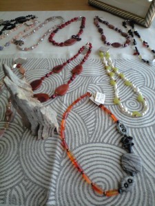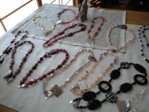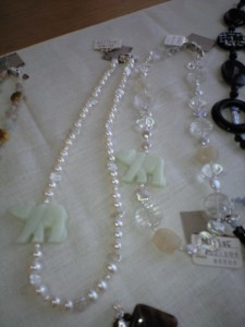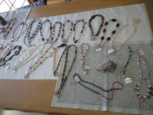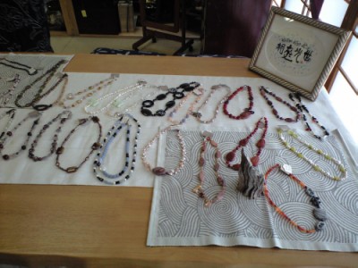 価格は7000円~3万円くらいまでで、ピアス、ブレスレット、ネックレスなどパワーストーンやパールを使っての作品で、個性あふれる素晴らしいものでした。